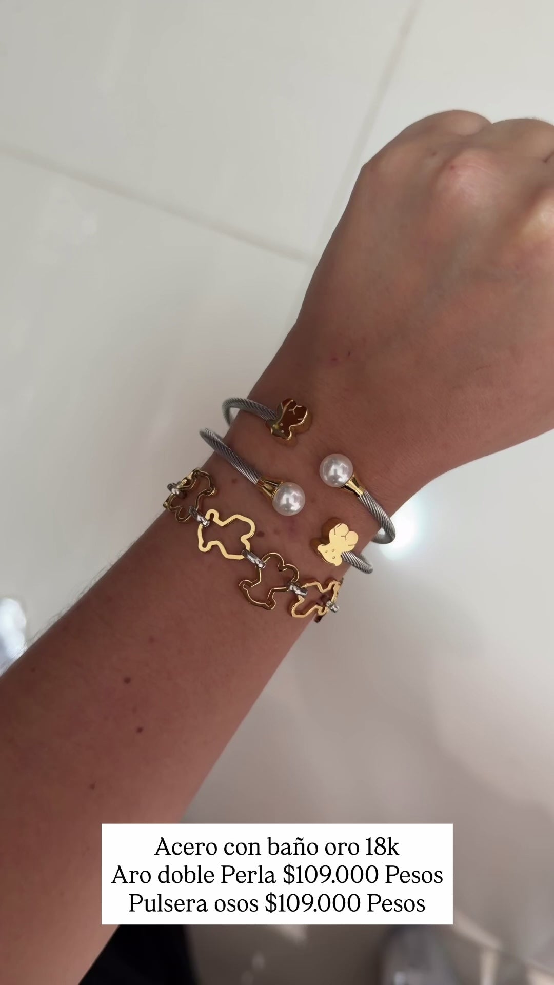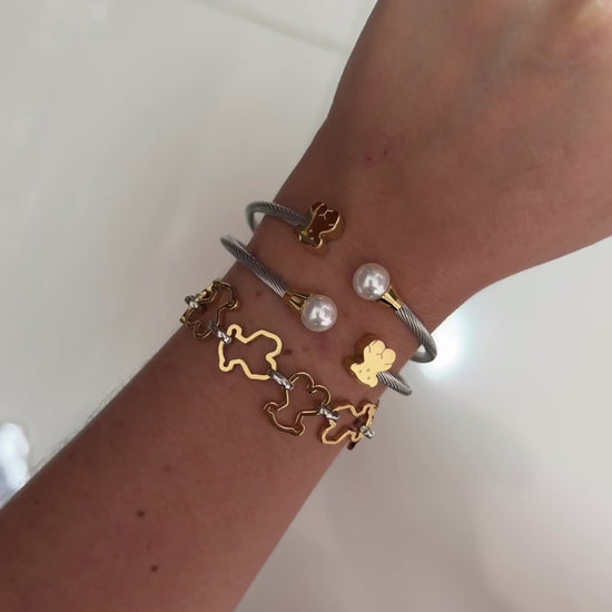 Pulsera acero con baño oro 18k